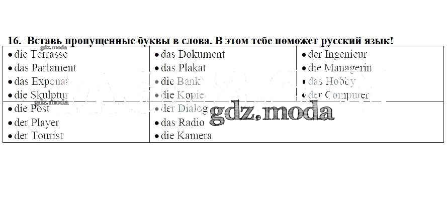 ГДЗ решение к заданию № 16 Немецкий язык 6 класс рабочая тетрадь Радченко Wunderkinder Просвещение 2012 бесплатно на гдз.мода!