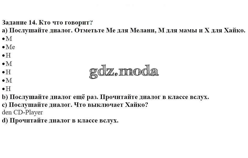 ГДЗ решение к заданию № 14 Немецкий язык 6 класс Радченко wunderkinder Просвещение 2014 Часть ФГОС бесплатно на гдз.мода!