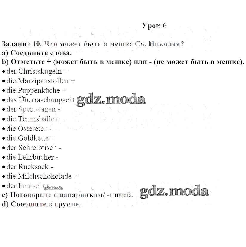 ГДЗ решение к заданию № 10 Немецкий язык 6 класс Радченко wunderkinder Просвещение 2014 Часть ФГОС бесплатно на гдз.мода!