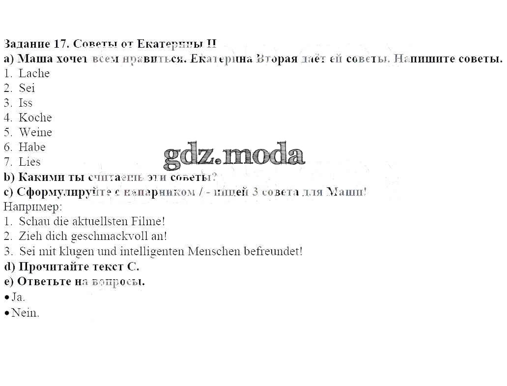 ГДЗ решение к заданию № 17 Немецкий язык 6 класс Радченко wunderkinder Просвещение 2014 Часть ФГОС бесплатно на гдз.мода!