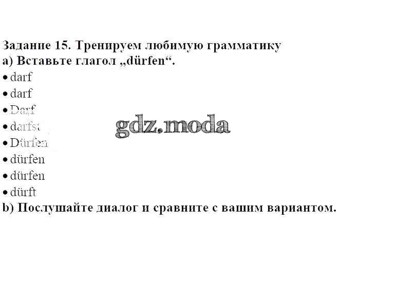 ГДЗ решение к заданию № 15 Немецкий язык 6 класс Радченко wunderkinder Просвещение 2014 Часть ФГОС бесплатно на гдз.мода!