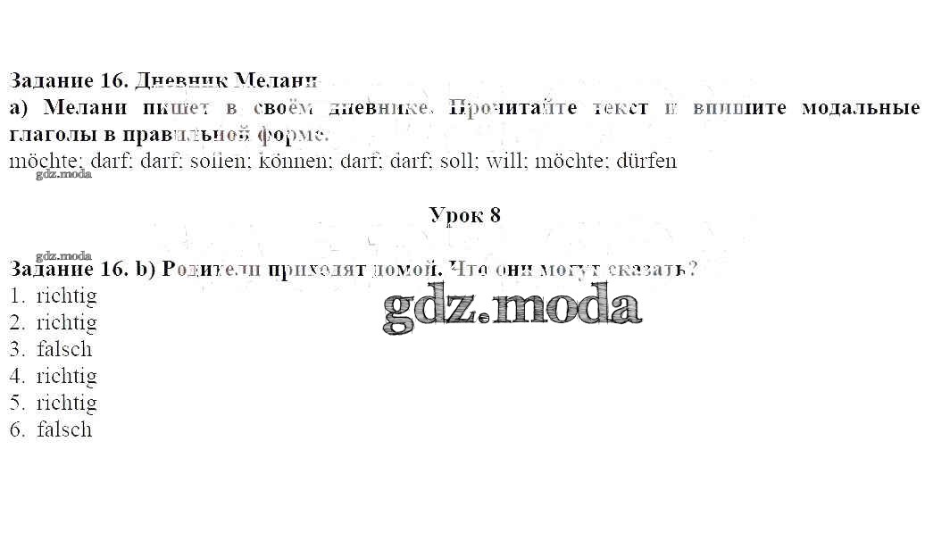 ГДЗ решение к заданию № 16 Немецкий язык 6 класс Радченко wunderkinder Просвещение 2014 Часть ФГОС бесплатно на гдз.мода!