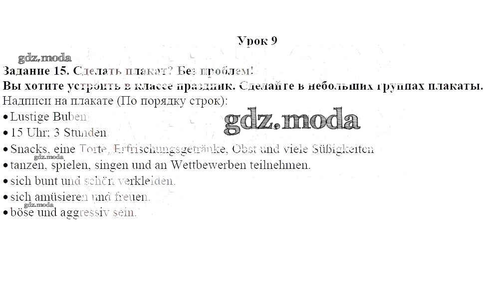 ГДЗ решение к заданию № 15 Немецкий язык 6 класс Радченко wunderkinder Просвещение 2014 Часть ФГОС бесплатно на гдз.мода!