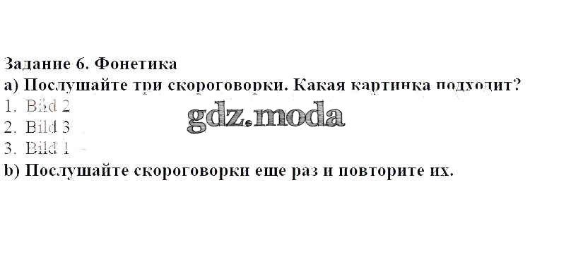 ГДЗ решение к заданию № 6 Немецкий язык 6 класс Радченко wunderkinder Просвещение 2014 Часть ФГОС бесплатно на гдз.мода!
