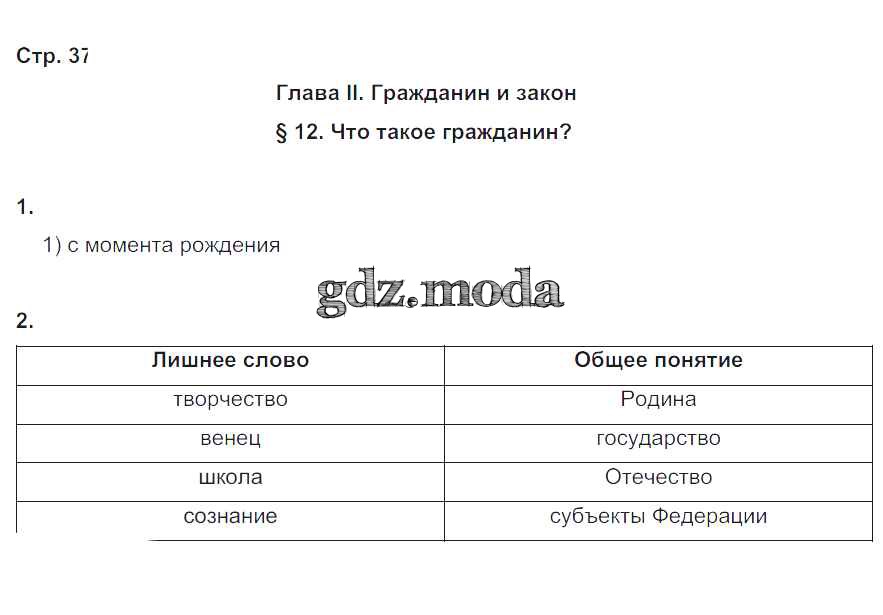 ГДЗ решение к заданию № стр. 37 Обществознание 6 класс рабочая тетрадь Федорова С.А. (к уч. Никитина) Дрофа 2017   ФГОС бесплатно на гдз.мода!