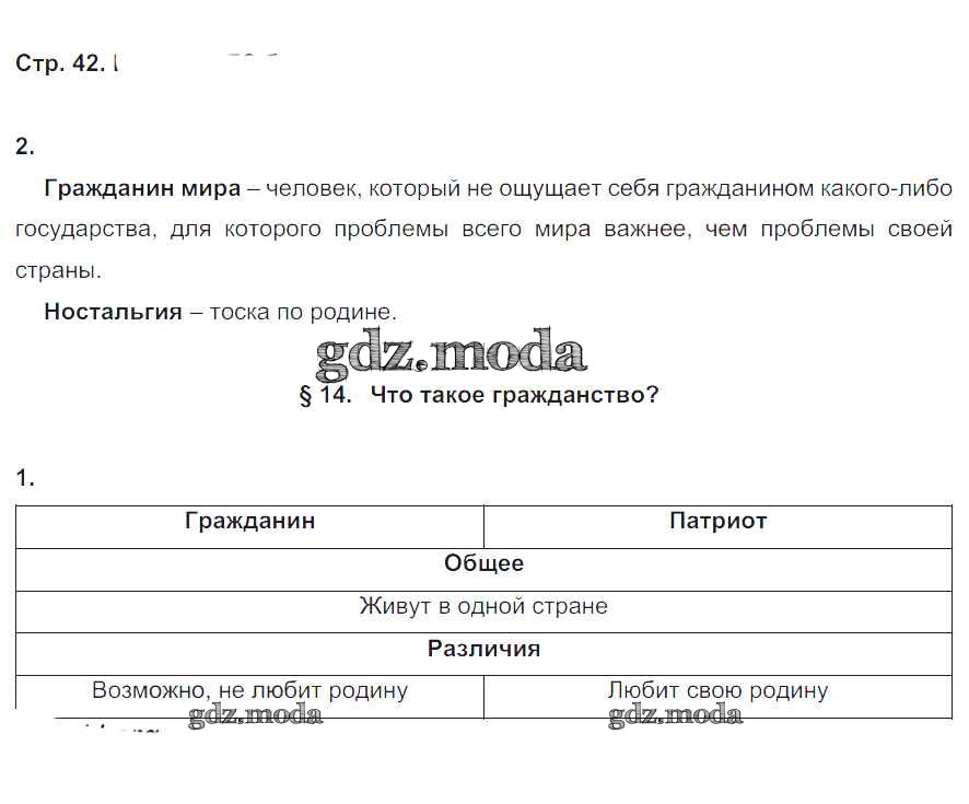 ГДЗ решение к заданию № стр. 42 Обществознание 6 класс рабочая тетрадь Федорова С.А. (к уч. Никитина) Дрофа 2017   ФГОС бесплатно на гдз.мода!