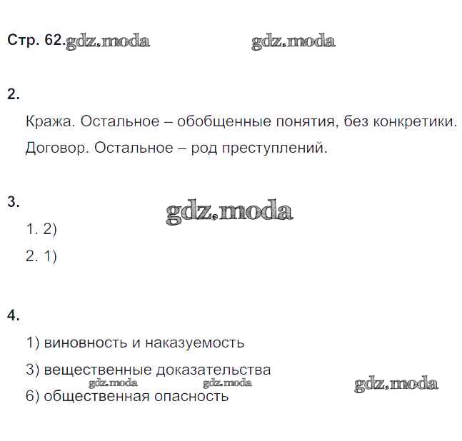 ГДЗ решение к заданию № стр. 62 Обществознание 6 класс рабочая тетрадь Федорова С.А. (к уч. Никитина) Дрофа 2017   ФГОС бесплатно на гдз.мода!