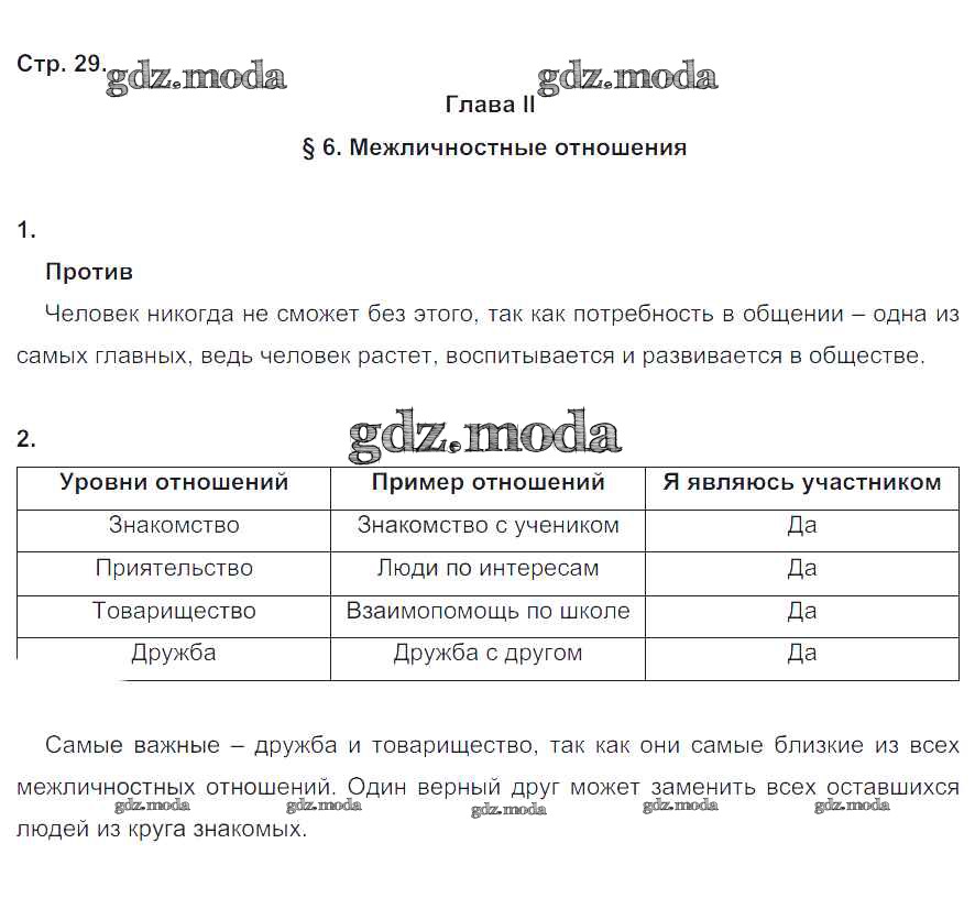 ГДЗ решение к заданию № стр. 29 Обществознание 6 класс рабочая тетрадь Иванова Л.Ф. Просвещение 2012 ФГОС бесплатно на гдз.мода!