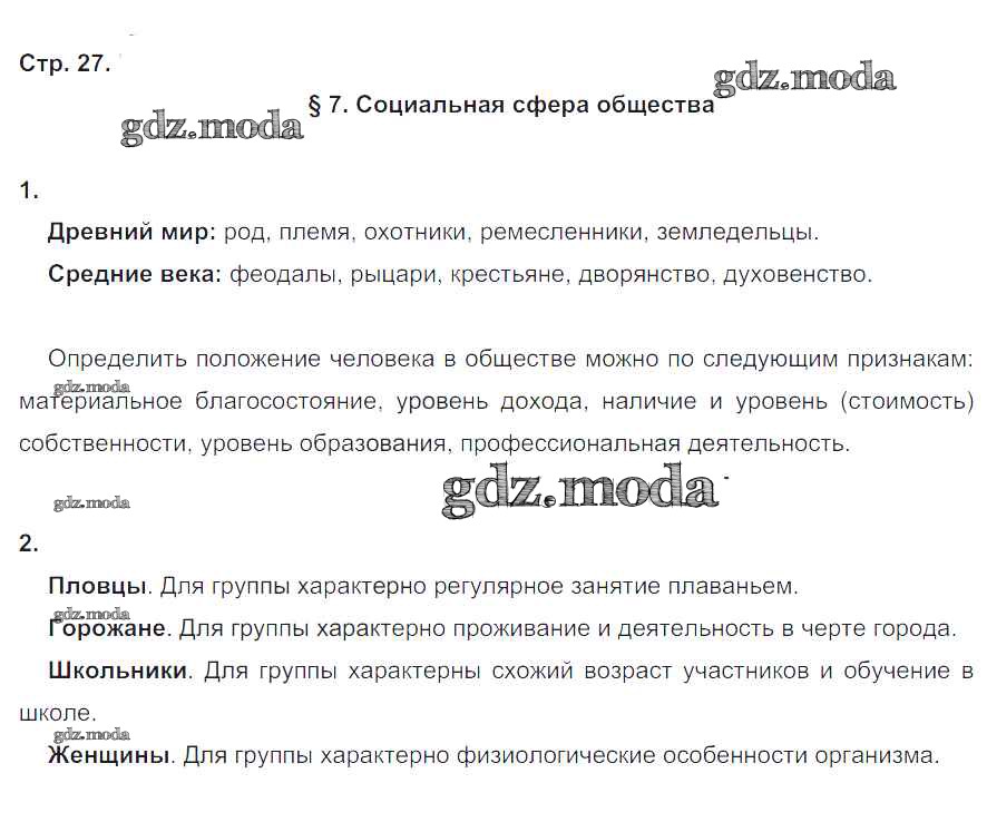 ГДЗ решение к заданию № 27 Обществознание 6 класс рабочая тетрадь Хромова И.С. (к уч. Кравченко) Русское слово 2015 ФГОС бесплатно на гдз.мода!