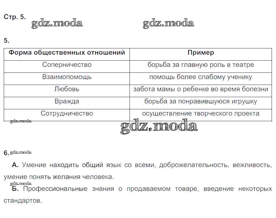 ГДЗ решение к заданию № 5 Обществознание 6 класс рабочая тетрадь Хромова И.С. (к уч. Кравченко) Русское слово 2015 ФГОС бесплатно на гдз.мода!