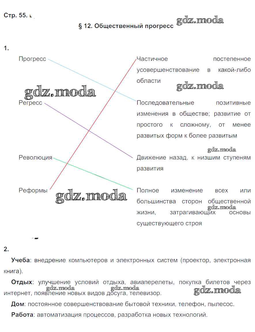 ГДЗ решение к заданию № 55 Обществознание 6 класс рабочая тетрадь Хромова И.С. (к уч. Кравченко) Русское слово 2015 ФГОС бесплатно на гдз.мода!