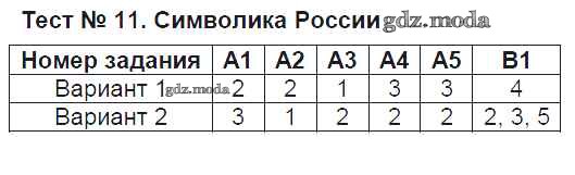 ОТВЕТ на задание № Тест №11. Символика России Контрольно-измерительные материалы (КИМ) по Обществознанию 6 класс Поздеева