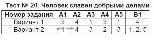 ГДЗ решение к заданию № Тест №20. Человек славен добрыми делами Обществознание 6 класс контрольно-измерительные материалы (КИМ) Поздеева А.В. ВАКО 2017 ФГОС бесплатно на гдз.мода!