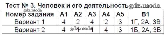 ГДЗ решение к заданию № Тест №3. Человек и его деятельность Обществознание 6 класс контрольно-измерительные материалы (КИМ) Поздеева А.В. ВАКО 2017 ФГОС бесплатно на гдз.мода!