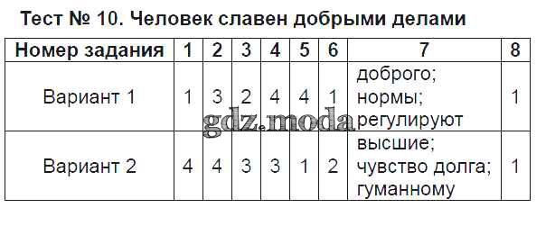 ОТВЕТ на задание № Тест №10. Человек славен добрыми делами Тесты по Обществознанию 6 класс Коваль УМК