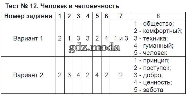 ОТВЕТ на задание № Тест №12. Человек и человечность Тесты по Обществознанию 6 класс Коваль УМК