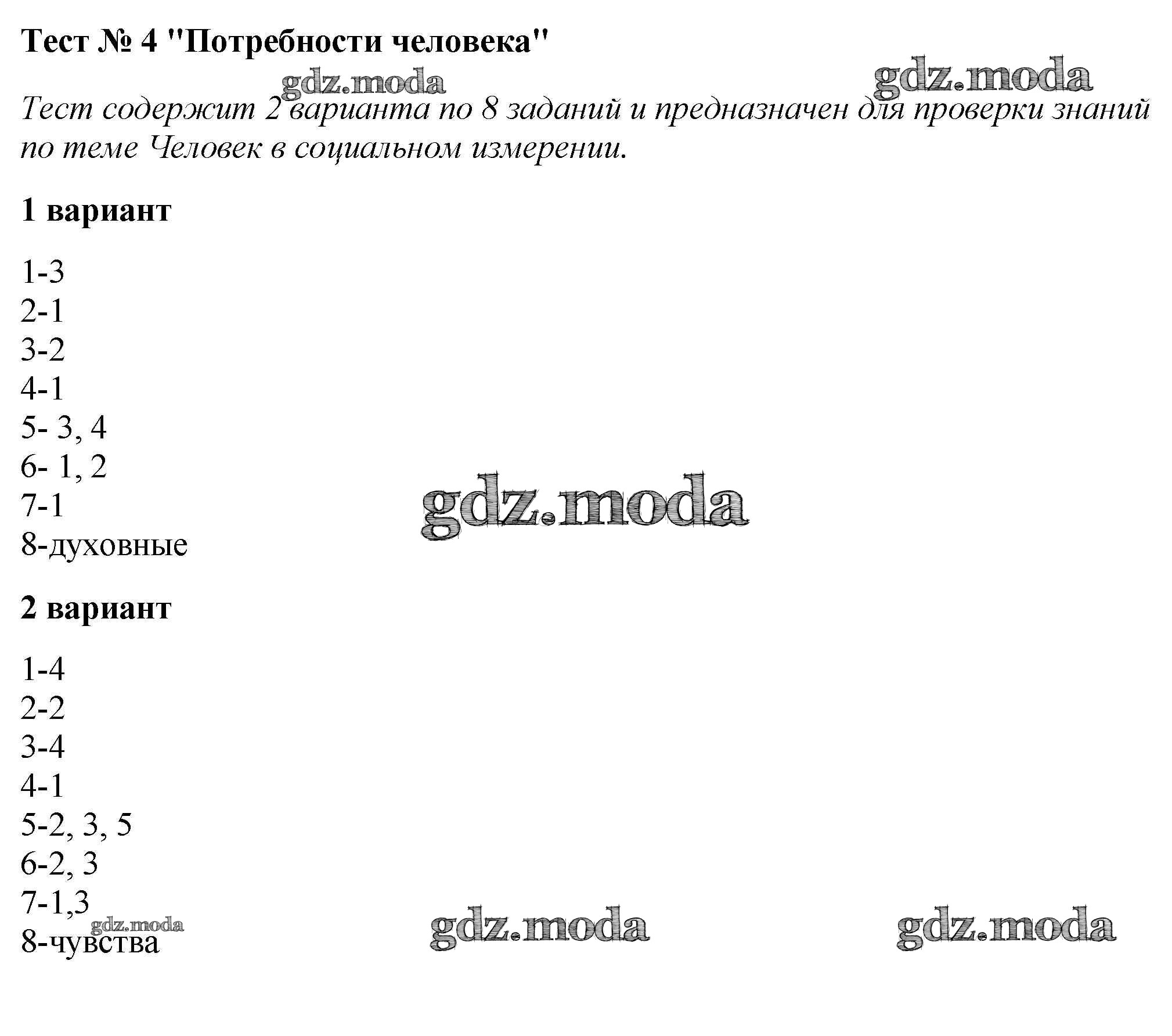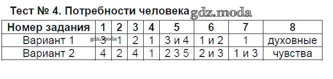 ОТВЕТ на задание № Тест №4. Потребности человека Тесты по Обществознанию 6 класс Коваль УМК