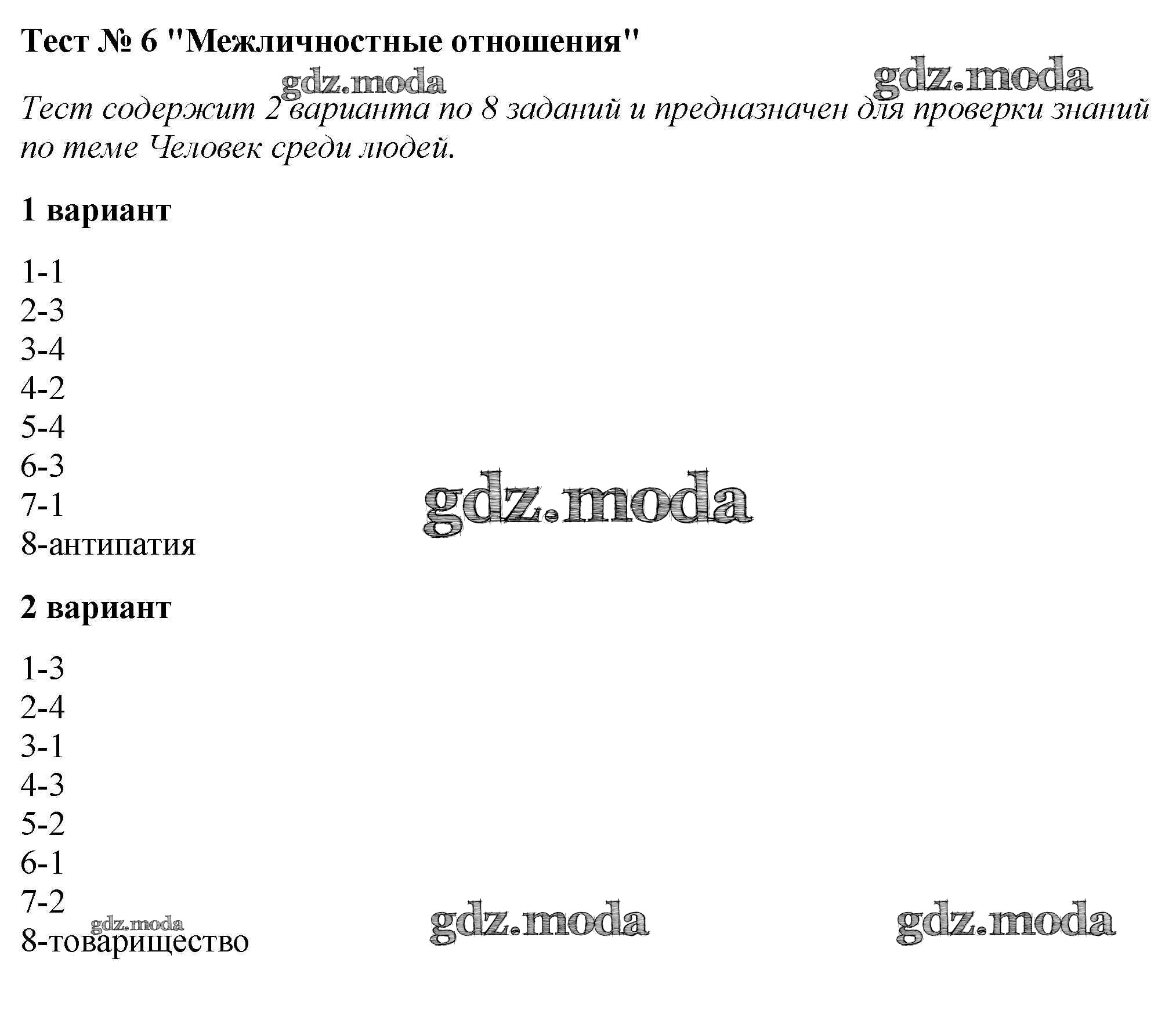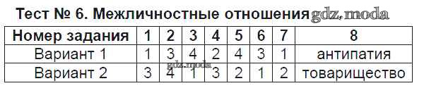 ОТВЕТ на задание № Тест №6. Межличностные отношения Тесты по Обществознанию 6 класс Коваль УМК