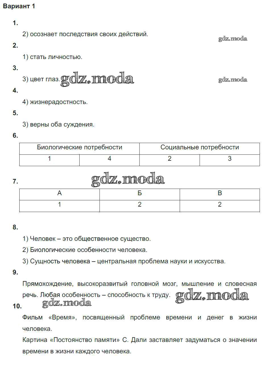 ГДЗ решение к заданию № вариант-1 Обществознание 5-6 класс Тематический контроль. Рабочая тетрадь Лобанов И.А. Национальное образование 2017 ФГОС бесплатно на гдз.мода!