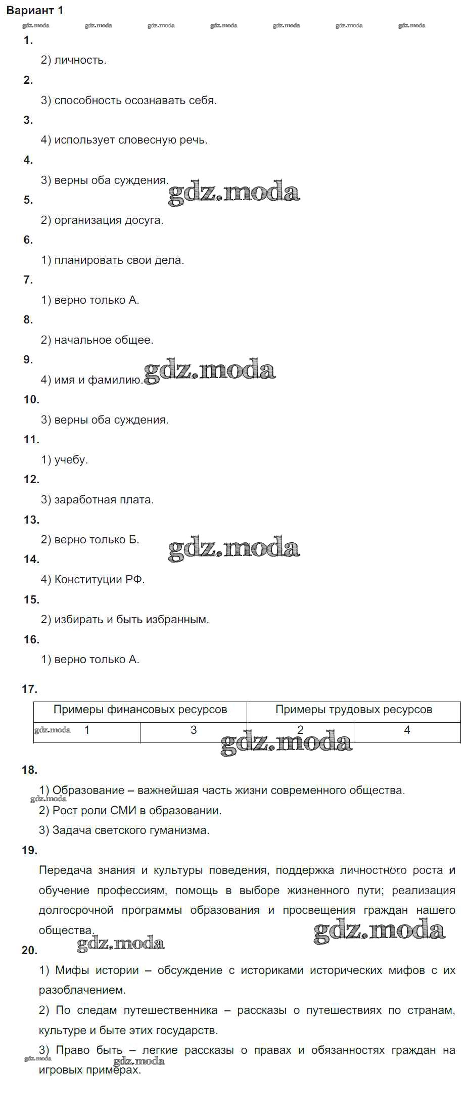 ГДЗ решение к заданию № вариант-1 Обществознание 5-6 класс Тематический контроль. Рабочая тетрадь Лобанов И.А. Национальное образование 2017 ФГОС бесплатно на гдз.мода!
