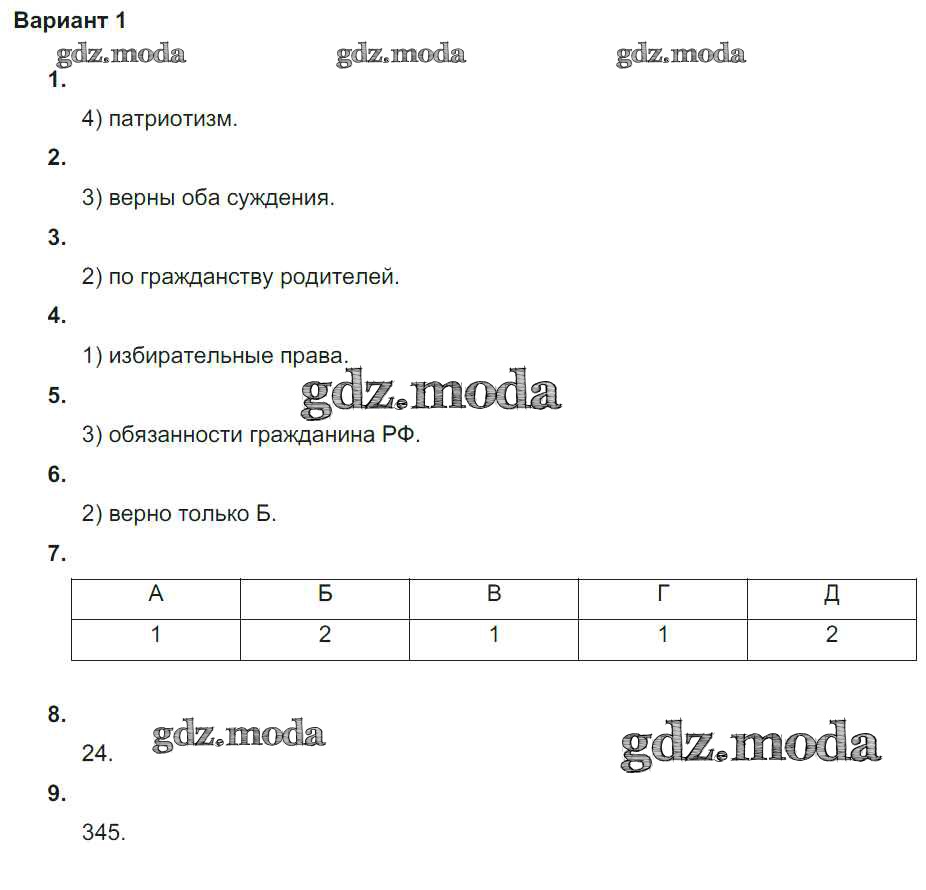 ГДЗ решение к заданию № вариант-1 Обществознание 5-6 класс Тематический контроль. Рабочая тетрадь Лобанов И.А. Национальное образование 2017 ФГОС бесплатно на гдз.мода!