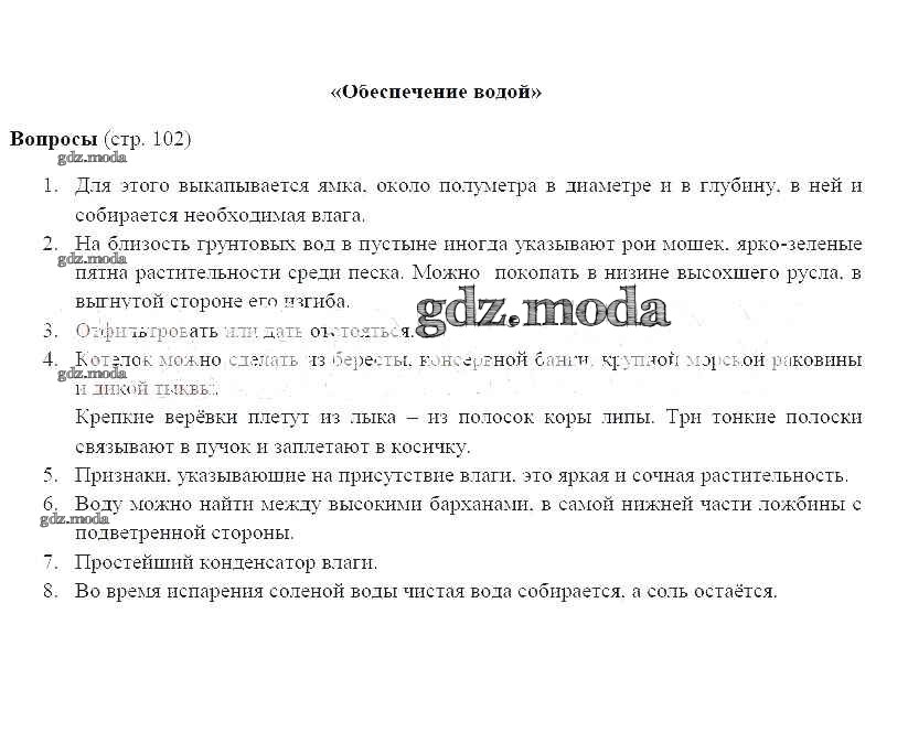 ГДЗ решение к заданию № 102 ОБЖ 6 класс Фролов М.П. Дрофа 2017 ФГОС бесплатно на гдз.мода!