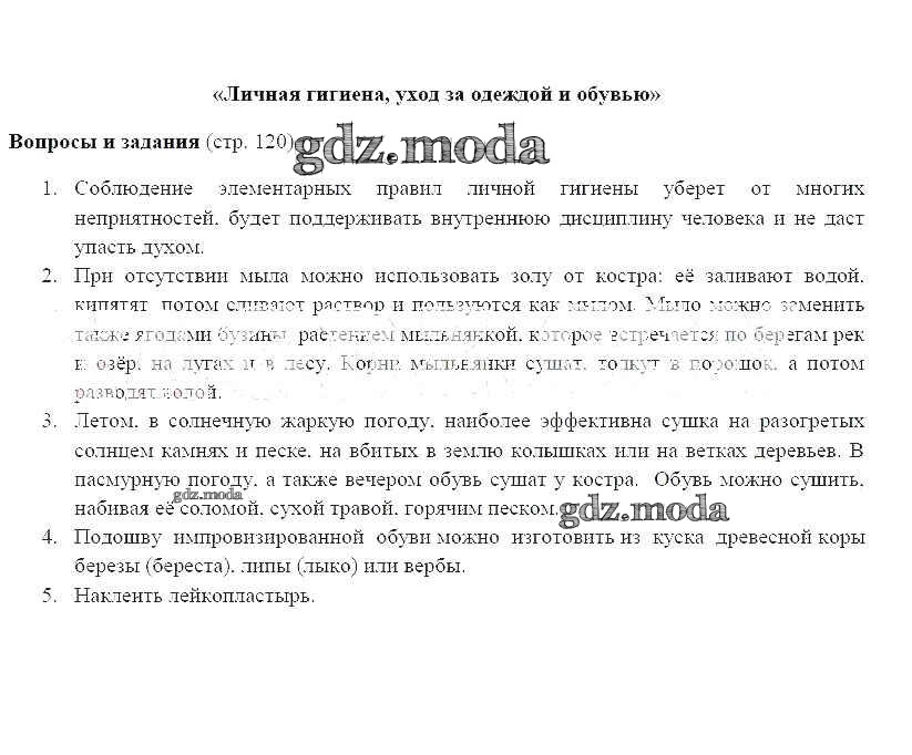 ГДЗ решение к заданию № 120 ОБЖ 6 класс Фролов М.П. Дрофа 2017 ФГОС бесплатно на гдз.мода!