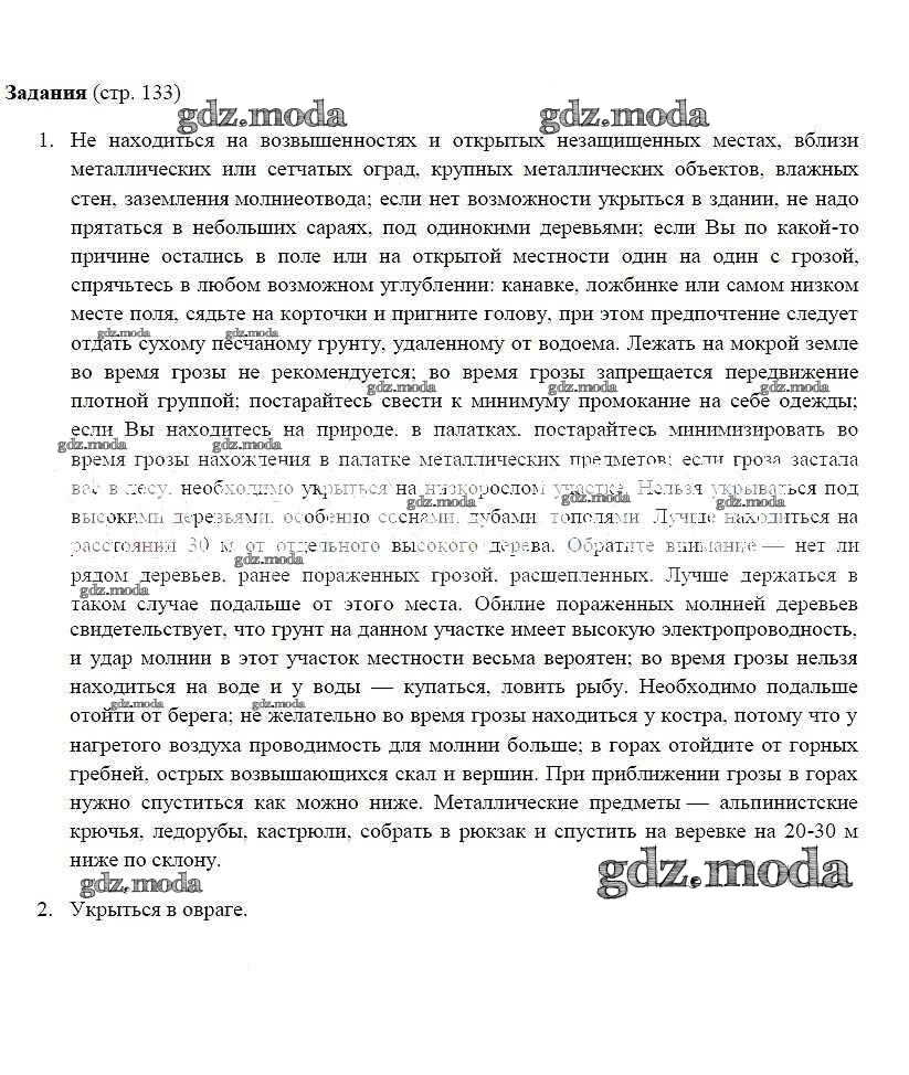ГДЗ решение к заданию № 133 ОБЖ 6 класс Фролов М.П. Дрофа 2017 ФГОС бесплатно на гдз.мода!