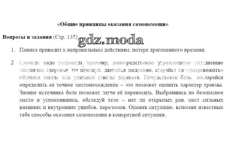 ГДЗ решение к заданию № 135 ОБЖ 6 класс Фролов М.П. Дрофа 2017 ФГОС бесплатно на гдз.мода!
