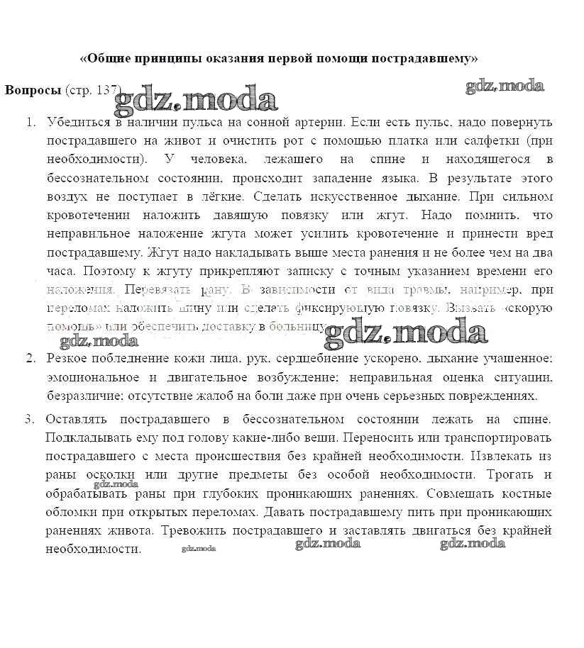 ГДЗ решение к заданию № 137 ОБЖ 6 класс Фролов М.П. Дрофа 2017 ФГОС бесплатно на гдз.мода!