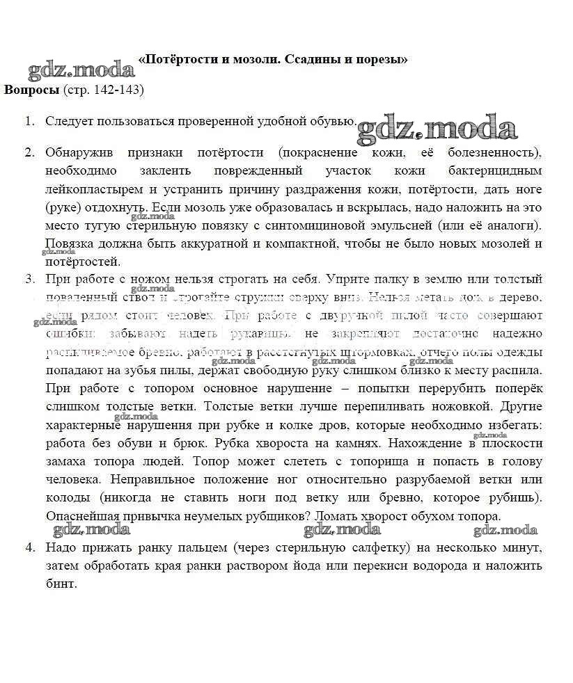 ОТВЕТ на задание № 142-143 Учебник по ОБЖ 6 класс Фролов