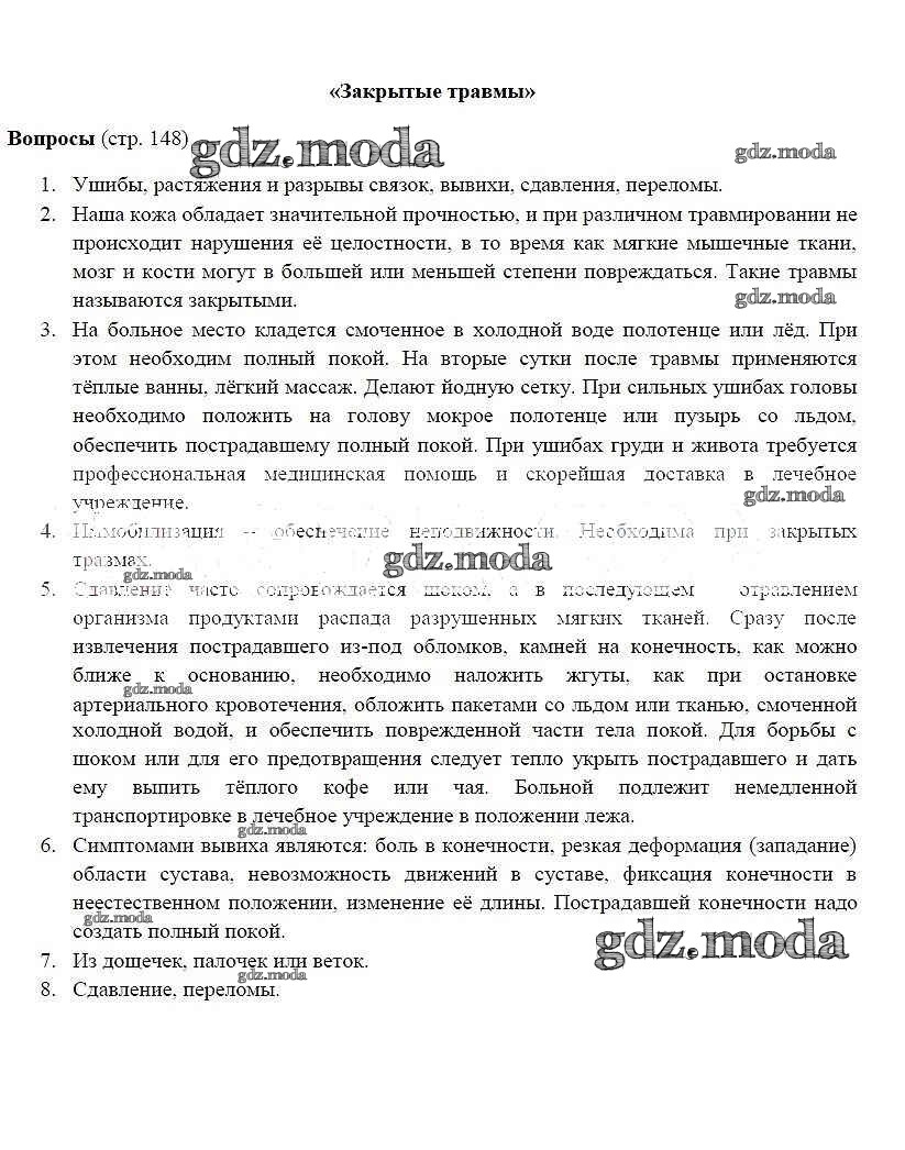 ГДЗ решение к заданию № 148 ОБЖ 6 класс Фролов М.П. Дрофа 2017 ФГОС бесплатно на гдз.мода!