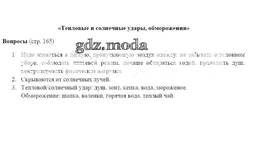 ГДЗ решение к заданию № 165 ОБЖ 6 класс Фролов М.П. Дрофа 2017 ФГОС бесплатно на гдз.мода!