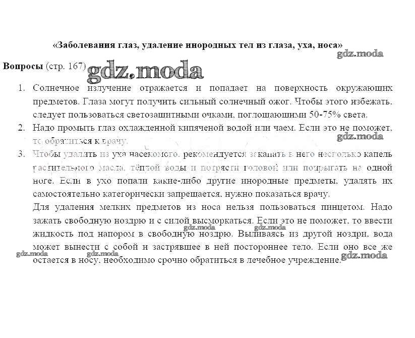 ГДЗ решение к заданию № 167 ОБЖ 6 класс Фролов М.П. Дрофа 2017 ФГОС бесплатно на гдз.мода!