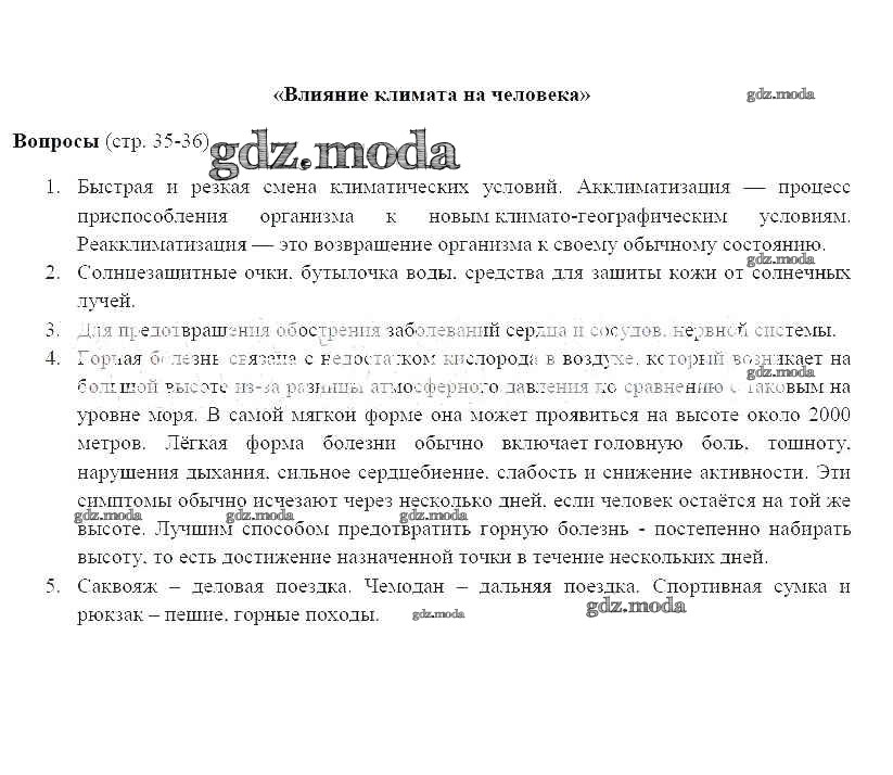 ГДЗ решение к заданию № 35-36 ОБЖ 6 класс Фролов М.П. Дрофа 2017 ФГОС бесплатно на гдз.мода!