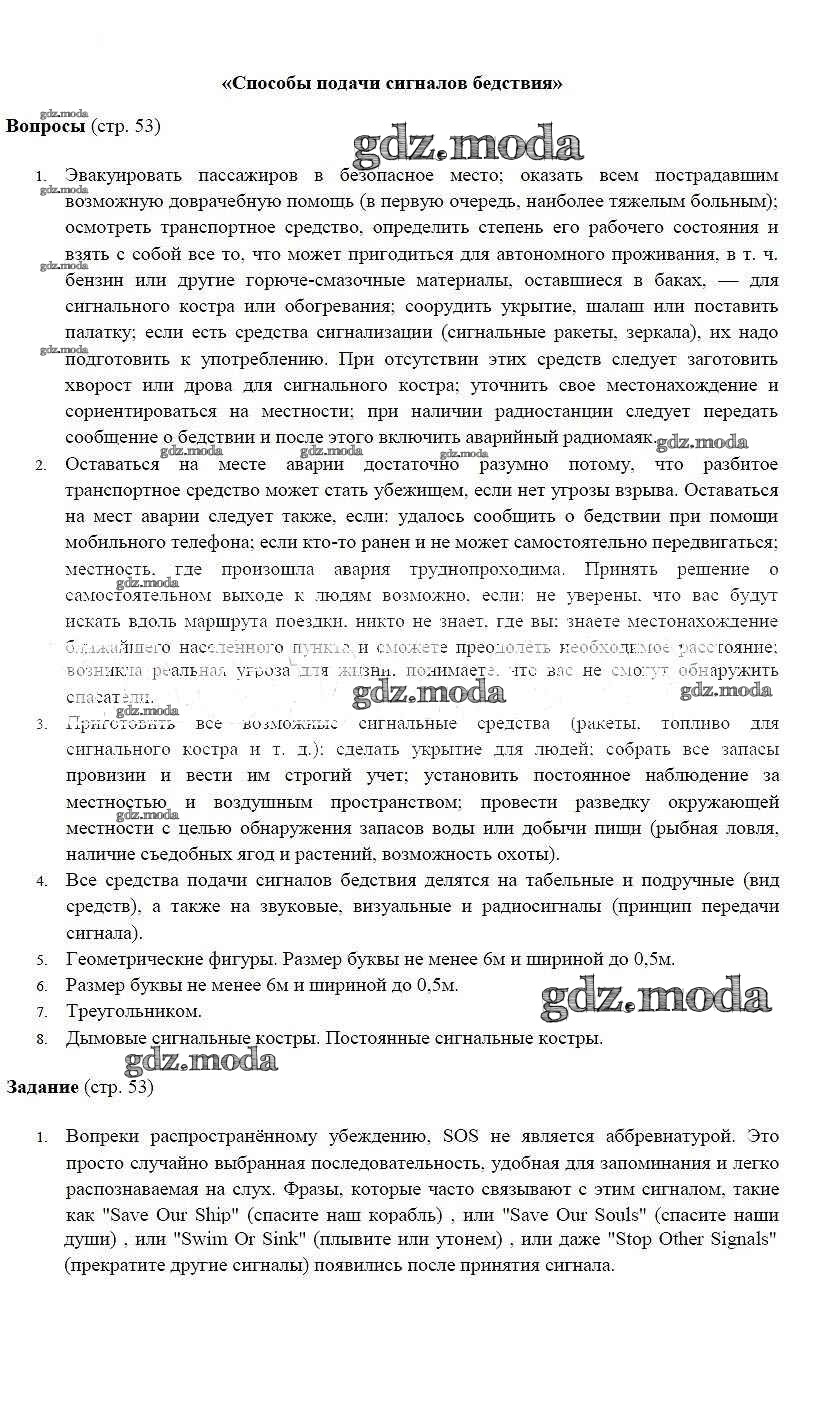 ГДЗ решение к заданию № 53 ОБЖ 6 класс Фролов М.П. Дрофа 2017 ФГОС бесплатно на гдз.мода!
