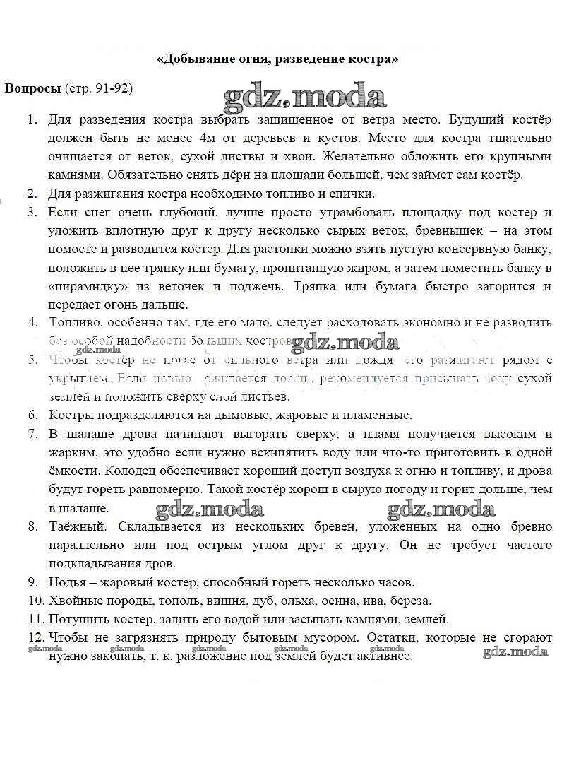 ГДЗ решение к заданию № 91-92 ОБЖ 6 класс Фролов М.П. Дрофа 2017 ФГОС бесплатно на гдз.мода!