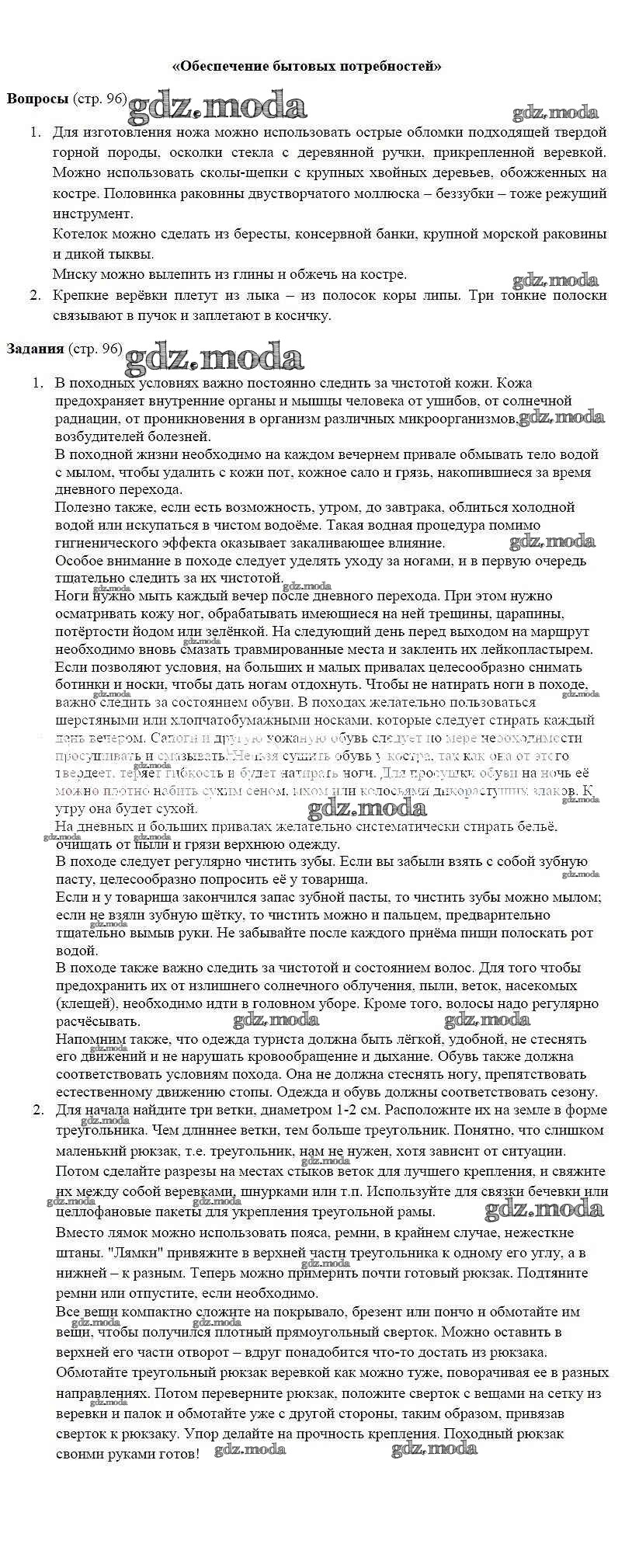 ГДЗ решение к заданию № 96 ОБЖ 6 класс Фролов М.П. Дрофа 2017 ФГОС бесплатно на гдз.мода!