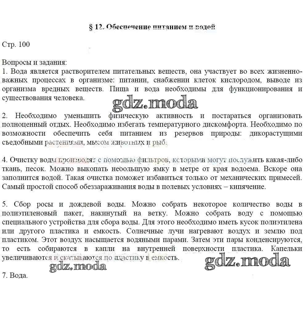 ГДЗ решение к заданию № 100 ОБЖ 6 класс Маслов А.Г. Дрофа 2018 ФГОС бесплатно на гдз.мода!