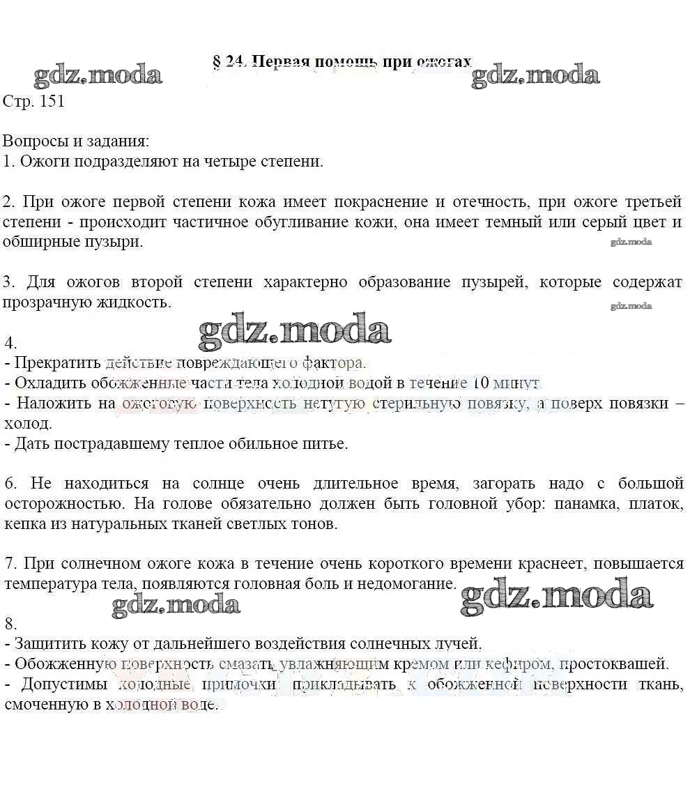 ГДЗ решение к заданию № 151 ОБЖ 6 класс Маслов А.Г. Дрофа 2018 ФГОС бесплатно на гдз.мода!