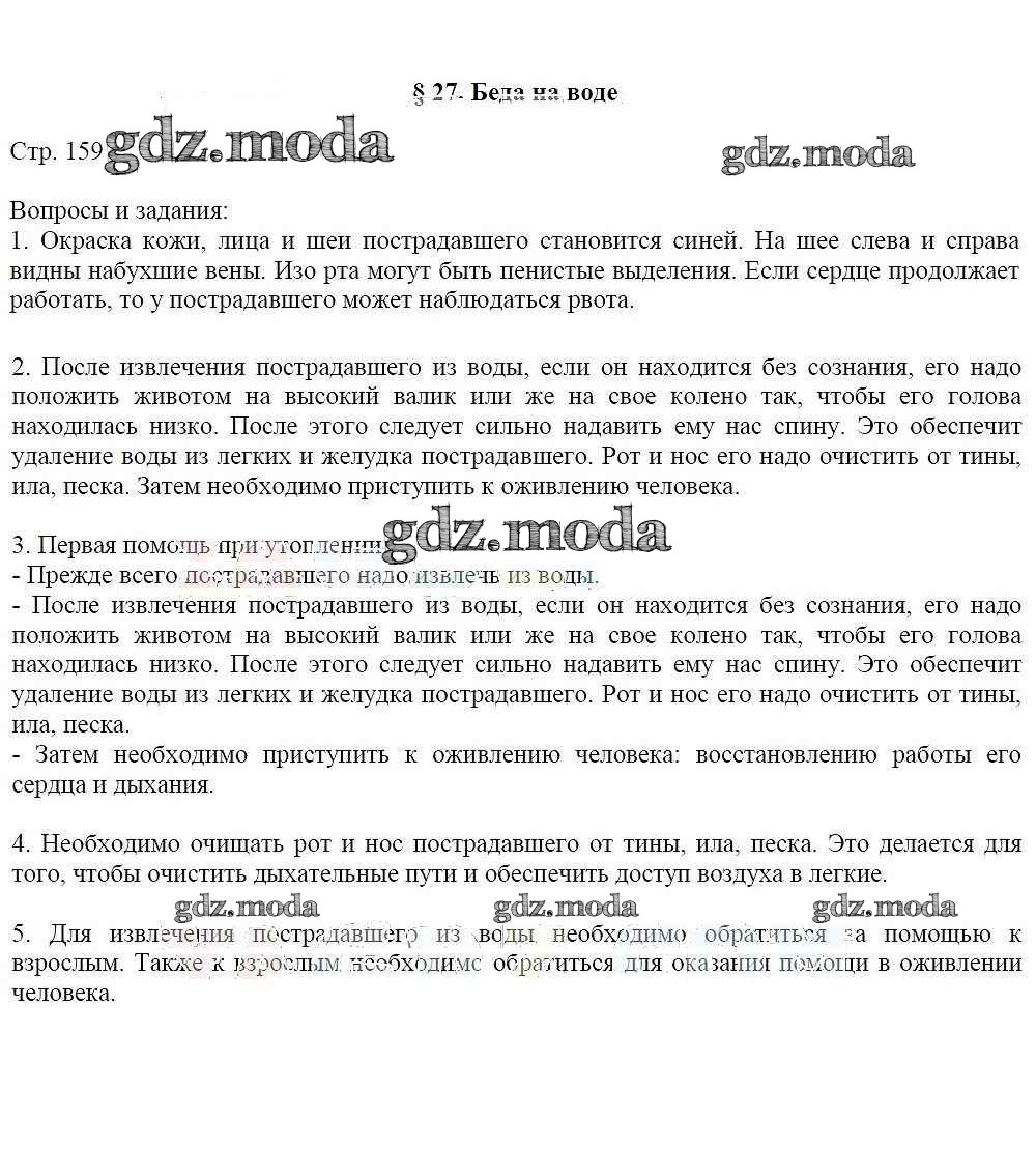 ГДЗ решение к заданию № 159 ОБЖ 6 класс Маслов А.Г. Дрофа 2018 ФГОС бесплатно на гдз.мода!