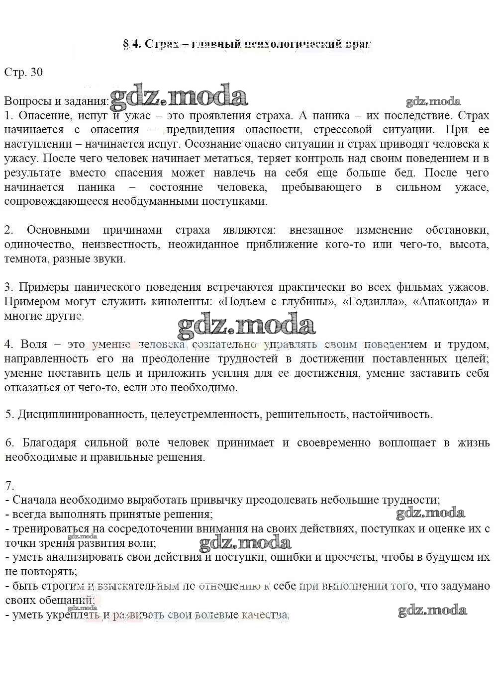 ГДЗ решение к заданию № 30 ОБЖ 6 класс Маслов А.Г. Дрофа 2018 ФГОС бесплатно на гдз.мода!