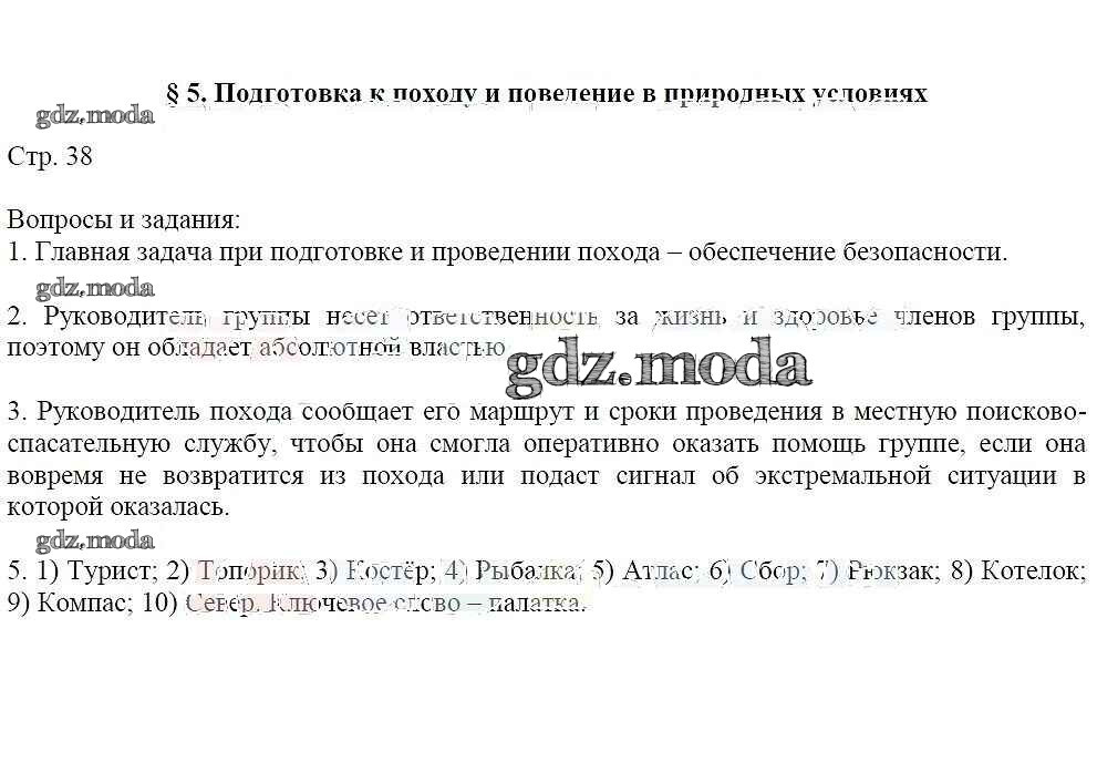 ГДЗ решение к заданию № 38 ОБЖ 6 класс Маслов А.Г. Дрофа 2018 ФГОС бесплатно на гдз.мода!