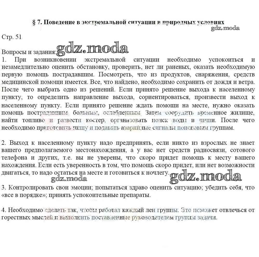 ГДЗ решение к заданию № 51 ОБЖ 6 класс Маслов А.Г. Дрофа 2018 ФГОС бесплатно на гдз.мода!