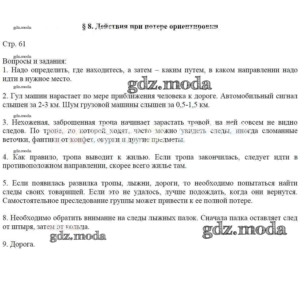 ГДЗ решение к заданию № 61 ОБЖ 6 класс Маслов А.Г. Дрофа 2018 ФГОС бесплатно на гдз.мода!