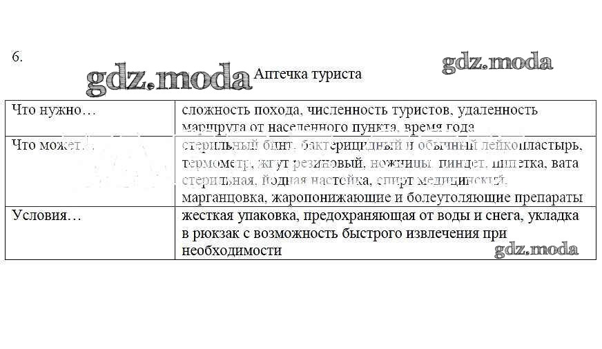 ГДЗ решение к заданию № 6 ОБЖ 6 класс рабочая тетрадь Егорова Л.В. Лицей 2012 ФГОС бесплатно на гдз.мода!