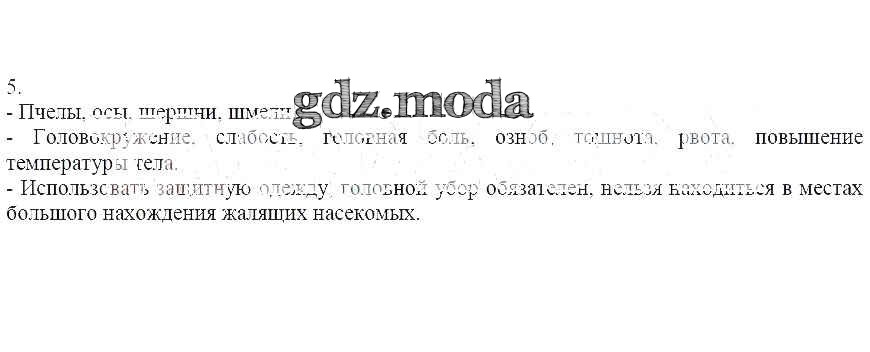 ГДЗ решение к заданию № 5 ОБЖ 6 класс рабочая тетрадь Егорова Л.В. Лицей 2012 ФГОС бесплатно на гдз.мода!