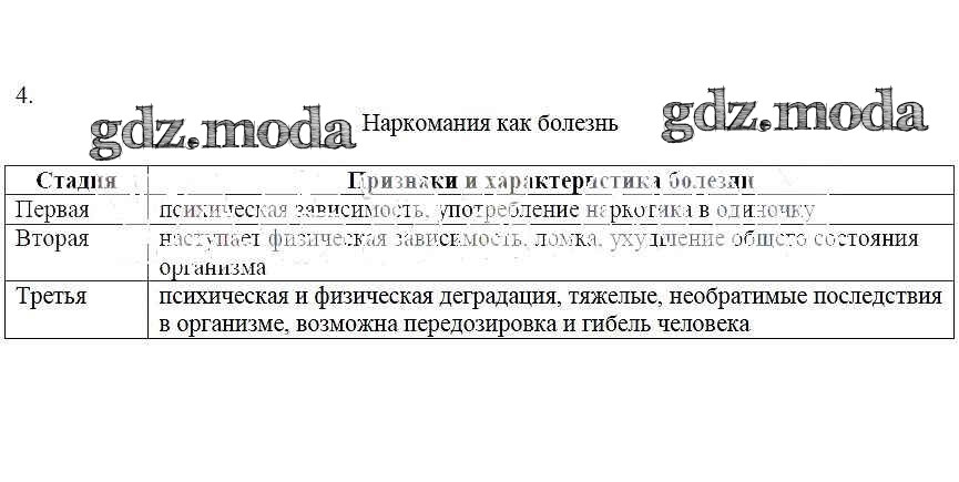 ГДЗ решение к заданию № 4 ОБЖ 6 класс рабочая тетрадь Егорова Л.В. Лицей 2012 ФГОС бесплатно на гдз.мода!