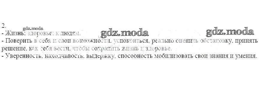 ГДЗ решение к заданию № 2 ОБЖ 6 класс рабочая тетрадь Демидов О.П. Лицей 2016 бесплатно на гдз.мода!