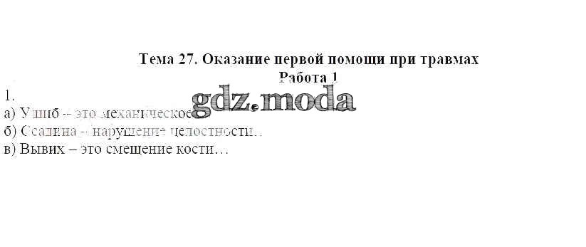 ОТВЕТ на задание № 1 Рабочая тетрадь по ОБЖ 6 класс Демидов